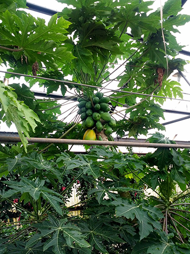 We can also make the system work well inside larger building spaces that don't involve shipping containers. These are ideally suited to high roofs and become dense food forests that grow larger plants like bananas and paw-paw. These can also be located in cities.